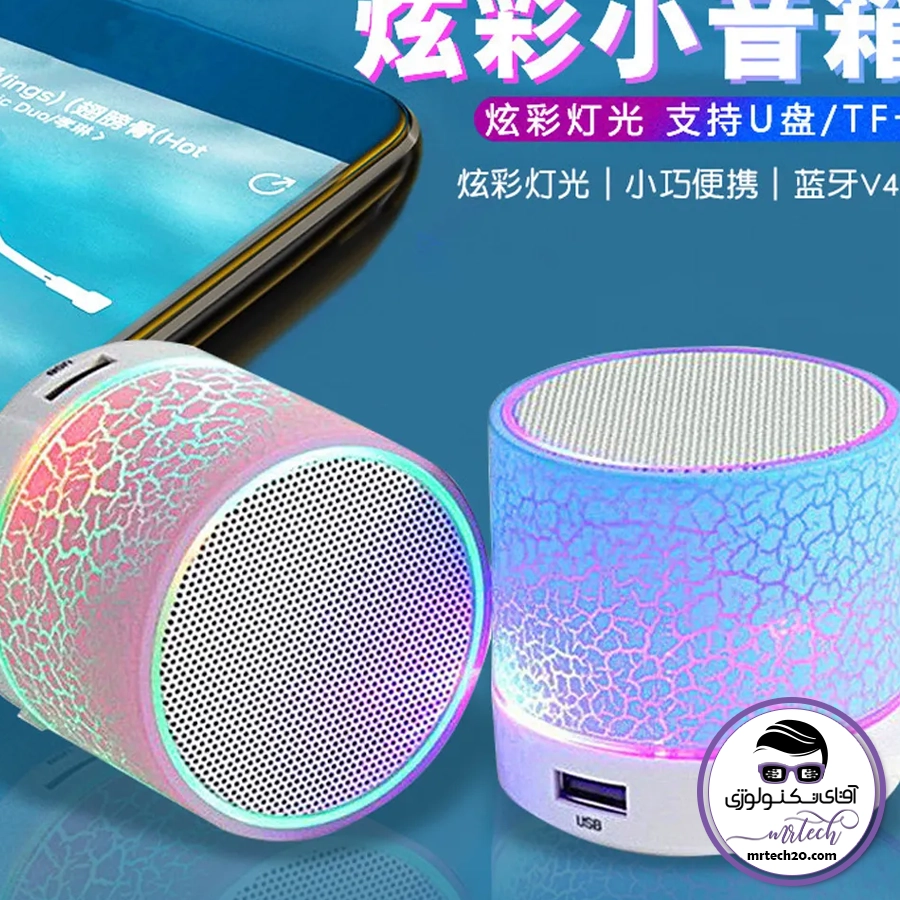 - حالت های اسپیکر: بلوتوث، رادیو FM و AUX – ورودی صدا با کابل تبدیل AUX به microUSB امکانپذیر است – مجهز به رقص نور