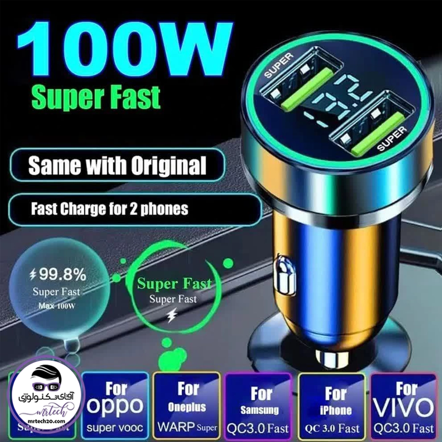 شارژر فندکی سوپر فست 200 وات نمایشگر وات ورودی