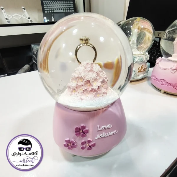 گوی موزیکال پمپی طرح گل صورتی و حلقه ازدواج میباشد. گوی پمپی از نوع باطری خور میباشد و دارای رقص نور چند رنگ به همراه ملودی ماندگار و خاطره انگیز میباشد