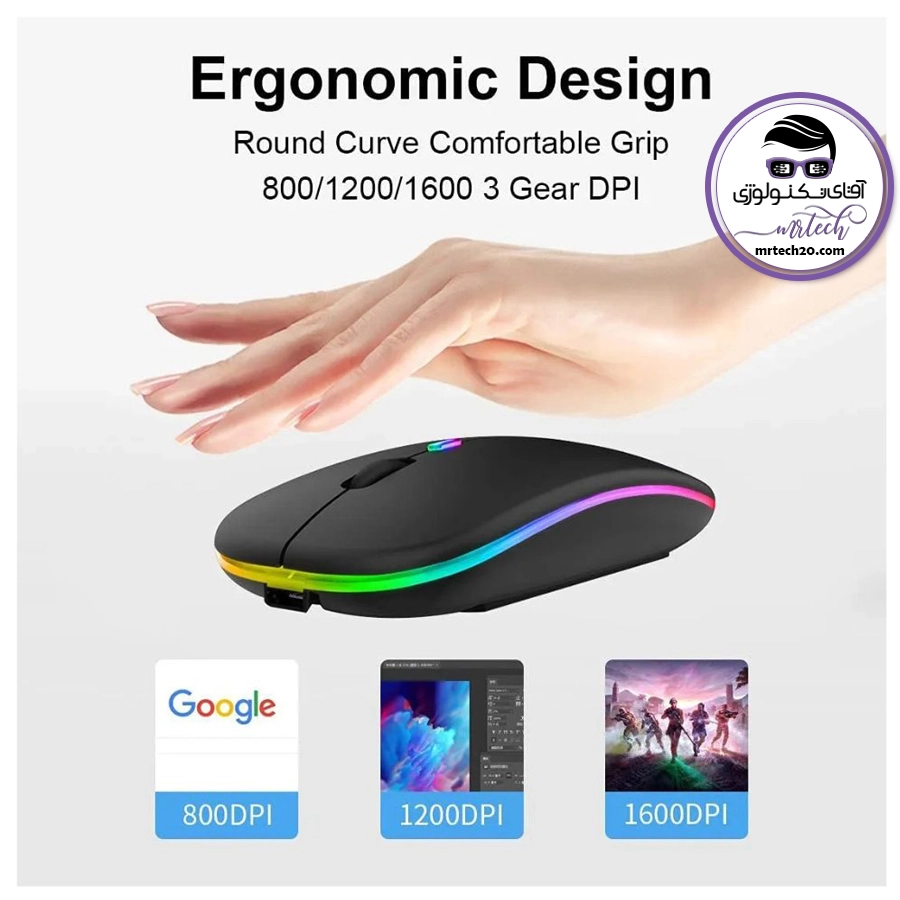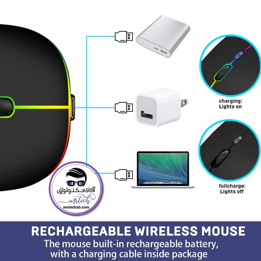 ماوس بی سیم و شارژی سایلنت RGB Plus مدل W10 برند HP